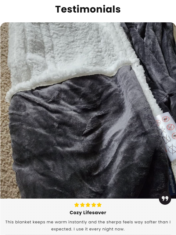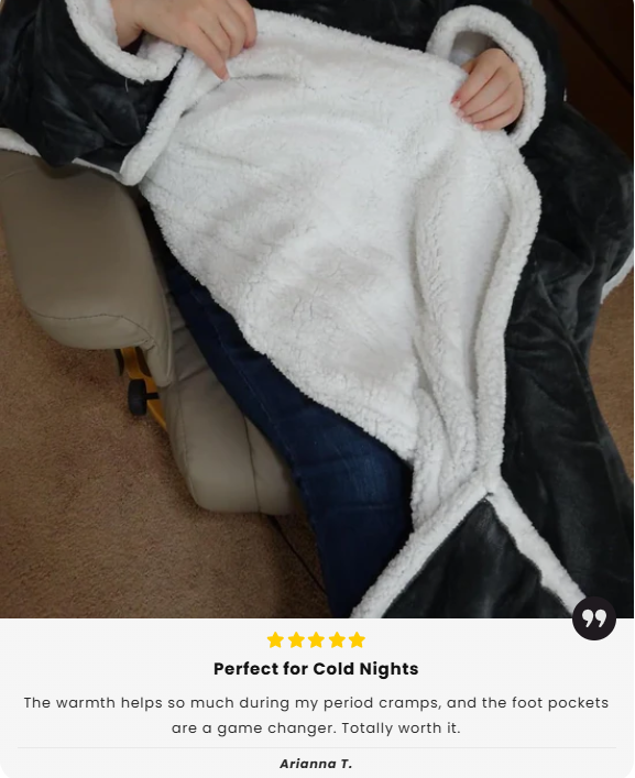 It measures 50"x70"(127 x178 cm),large enough to wrap aroundyour whole body for full warmthand comfort.