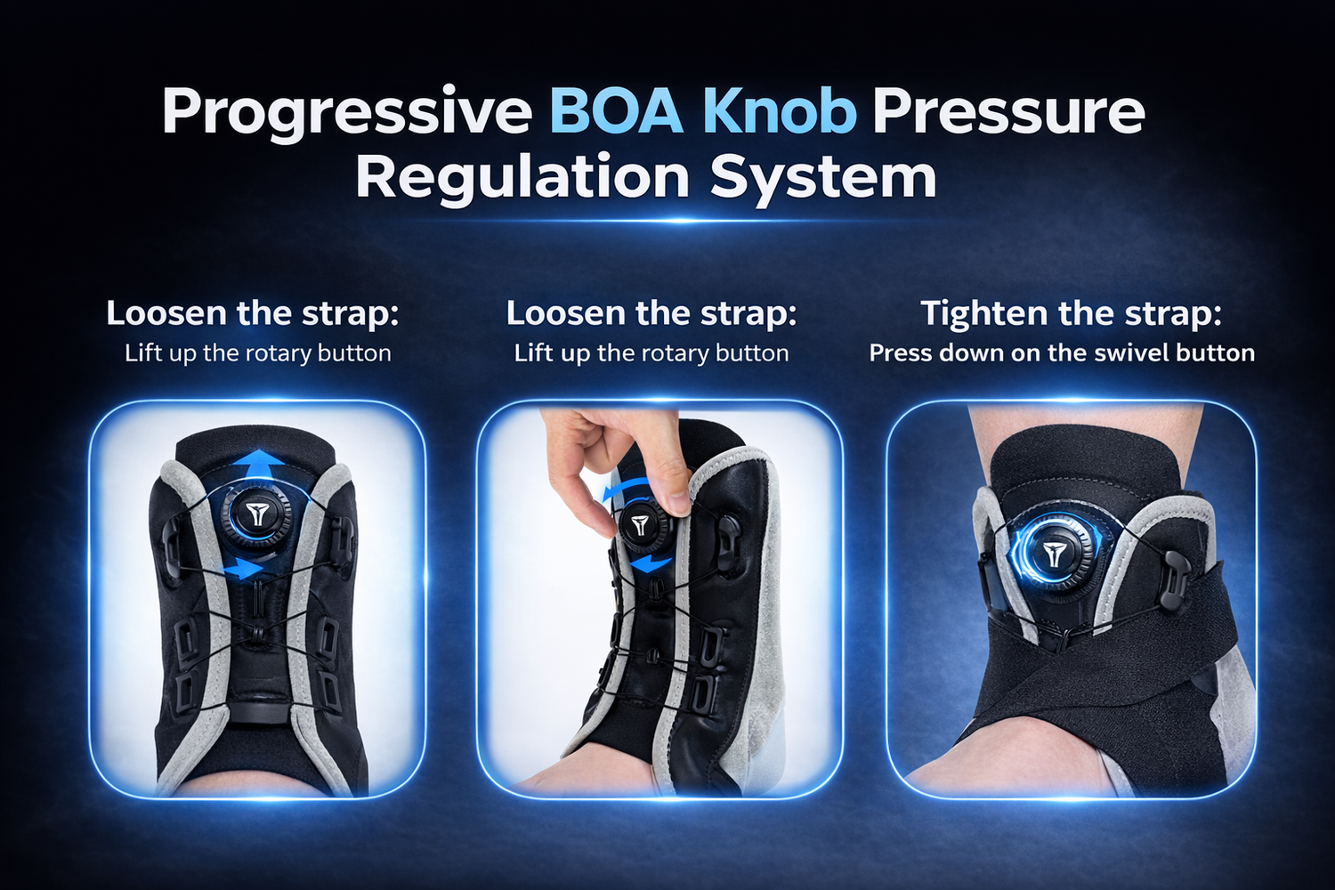 The precision dial system tightens evenly around your ankle — giving you a secure, locked-in feel without over-tightening or discomfort.